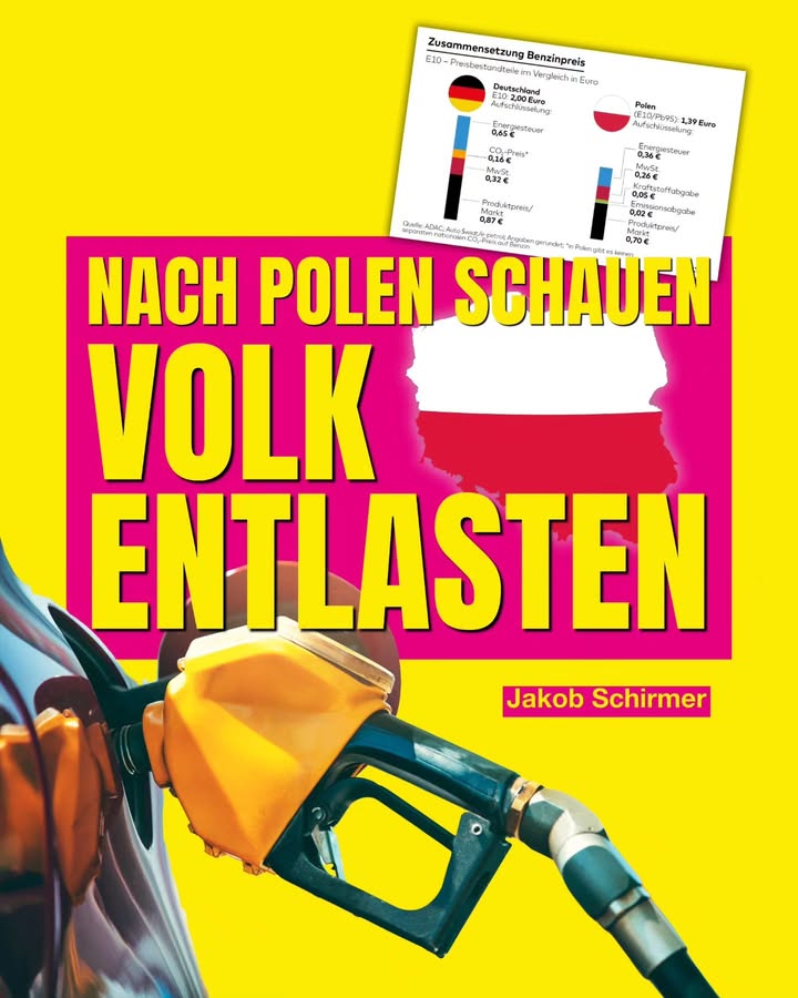 Volk entlasten! 🚨 Rekord-Dieselpreis: Über 2,35 € pro Liter! Die #Preise an der Zapfsäule explodieren und die Bundesregierung heizt das mit ihrer grünen #Steuerpolitik noch weiter an. Die CO₂-Abgabe allein kostet Pendler, Landwirte und das Transportgewerbe 17–20 Cent pro Liter. Das treibt die Inflation an und belastet unsere Wirtschaft massiv. Jakob Schirmer, Spitzenkandidat der #FDP #MecklenburgVorpommern, fordert: ✅ CO₂-Abgabe sofort abschaffen ✅ Energie-Steuern deutlich senken Polen zeigt, wie es geht: MwSt. auf Kraftstoffe von 23 % auf 8 % gesenkt, Energiesteuer runter auf EU-Minimum und Preisobergrenzen eingeführt. Statt Symbolpolitik braucht Deutschland 🇩🇪 endlich Entlastung an der Zapfsäule! Weniger Steuern. Mehr #Freiheit. Bezahlbare Energie. 👉 Am 20. September 2026 wählen wir vernünftige Politik.