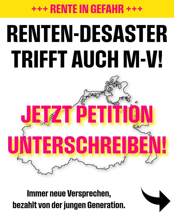 Die Bundesregierung steuert mit ihrem Rentenpaket kopflos in ein finanzielles Desaster – zahlen sollen vor allem die Jüngeren. Gerade in einem Flächenland wie Mecklenburg-Vorpommern trifft das Beschäftigte, Familien und Unternehmen hart.  Wir Freie Demokraten wollen eine Aktienrente und echte Strukturreformen statt immer neuer Milliarden auf Pump. Wer heute arbeitet, muss sich darauf verlassen können, dass die eigene Rente morgen sicher ist – ohne die junge Generation in MV zu überfordern.  ✍️ Unterstütze jetzt die Petition der FDP gegen das Merz-Rentenpaket – den Link findest du in unserer Bio. #fdpmv #Rente #Aktienrente #Rentenpaket #Merz #Freiheit #mecklenburgvorpommern